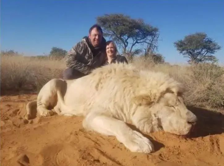 B.动物:持枪夫妻和狮子尸体的合影