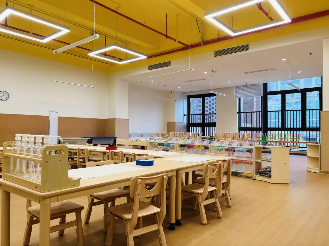 幼儿园大楼的1至3层设有从PreK到K3的各年级教室,同时配备了图书馆、音乐舞蹈室、科学美术探究室和餐厅等多元化功能区域。特别值得一提的是,2至3层布局了各类特色功能室,如宽敞的科学美术探究室、丰富的图书馆藏书以及专业的音乐舞蹈练习室等。每个功能室都根据孩子们的兴趣爱好精心配置了各类教具和玩具,为他们的全面发展提供了有力支持。