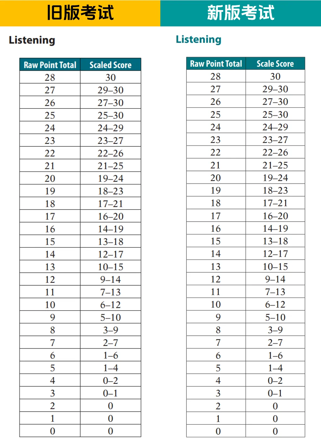 在去年的改革中,听力考试除了移除了“确认”按钮外,题目类型和数量都保持不变。因此,评分标准也与改革前相同,即在错答3题以内仍有可能获得满分。具体的评分标准如下: