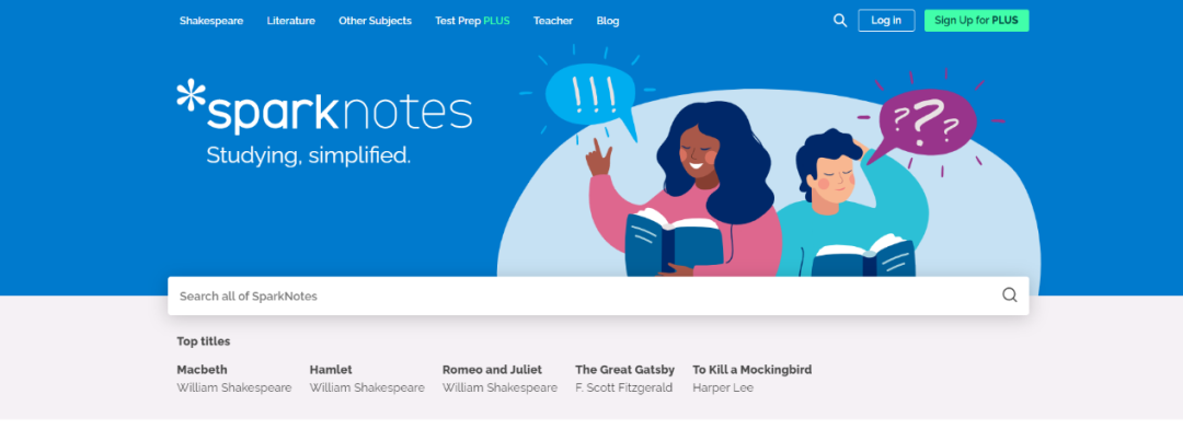 Sparknotes是一个备受美国本土高中生青睐的学习平台,上面汇聚了众多高质量的文学指南和学习材料,且完全免费。值得一提的是,不少考试都曾大量引用过其中的内容。