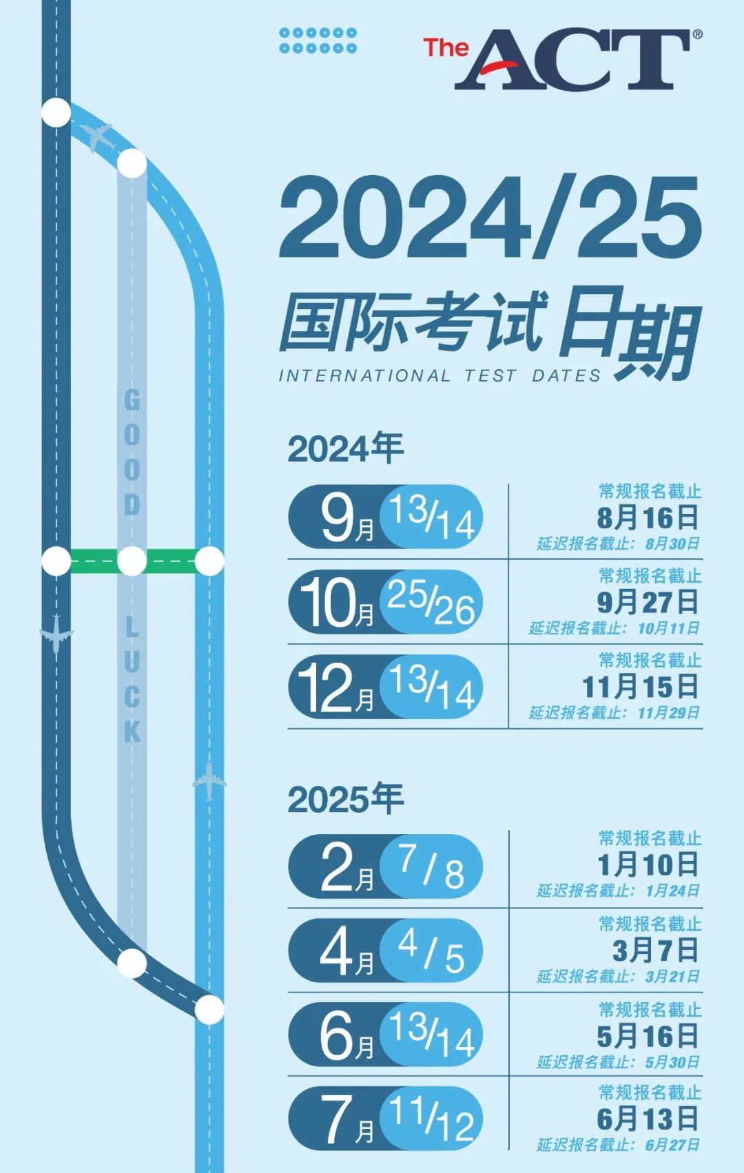 2024-2025年ACT考试时间