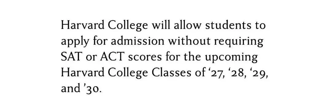 哈佛大学自2023-2026申请季都实行Test-Optional标化可选政策。