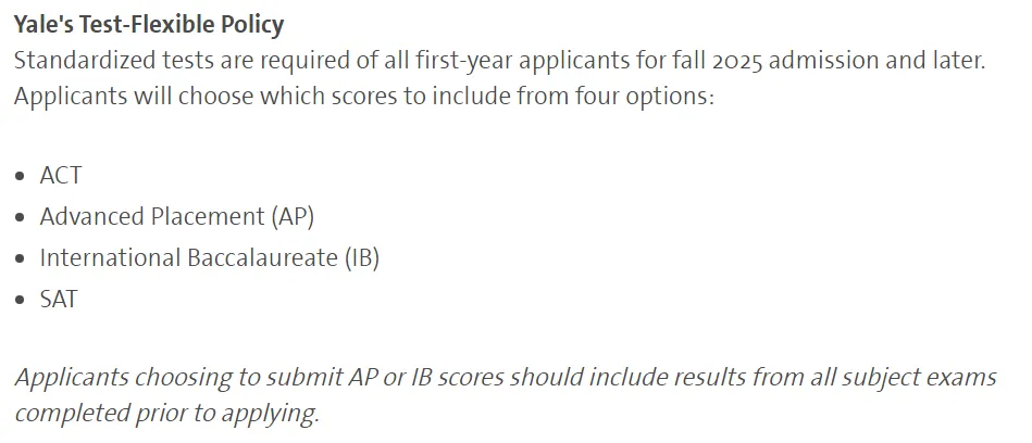 耶鲁大学从2024-2025申请季及以后,都将采用Test-Flexible政策。