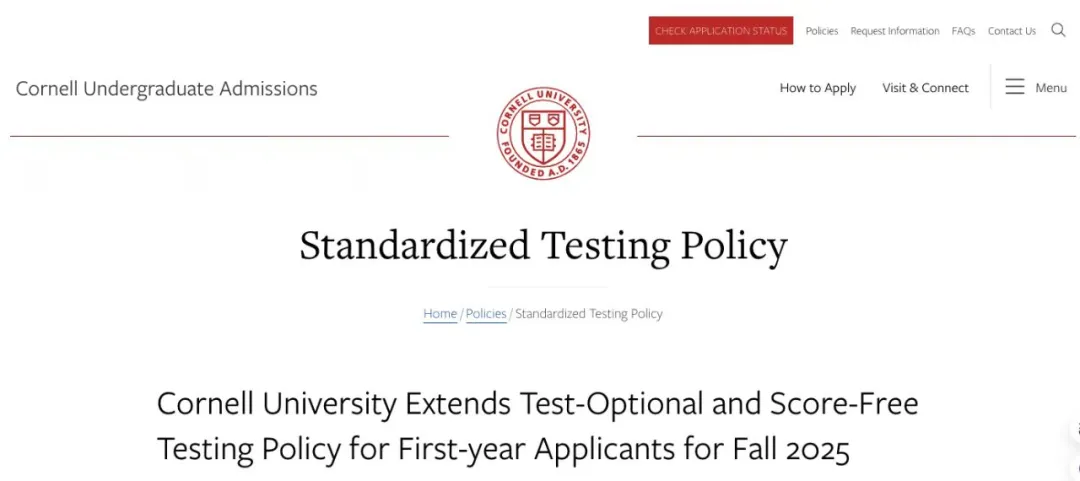 康奈尔大学对2025年秋季入学申请者延长了标化可选政策,并在各个本科学院采取了细化的立场,不同的学院持有不同的政策。