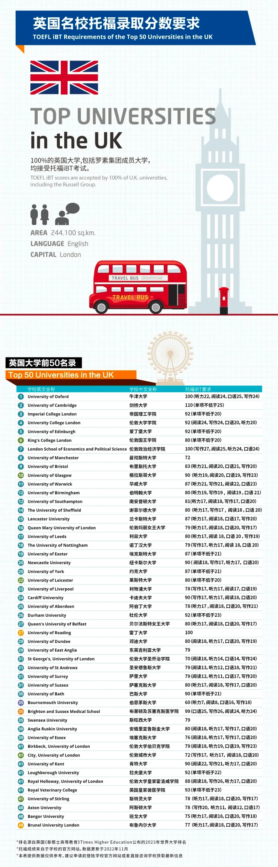 根据2024年QS世界大学最新排名,全球前100强中,英国高校就占据了17席,这样的教育实力是否让你心动?现在,就让我们一同来探秘英国各大院校对于托福分数的具体要求吧!
