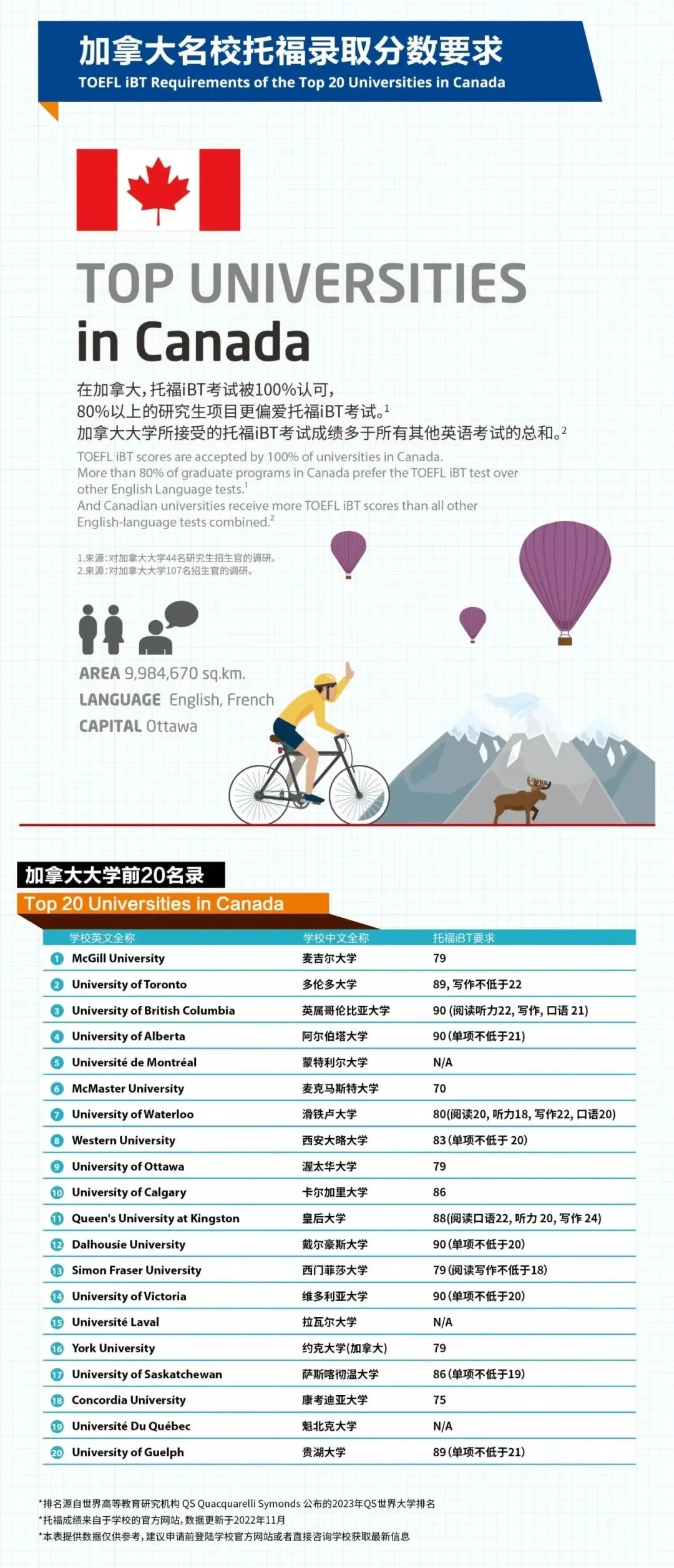 现在,让我们一起探讨一下多伦多大学、麦吉尔大学等知名加拿大院校对托福分数的具体要求吧!