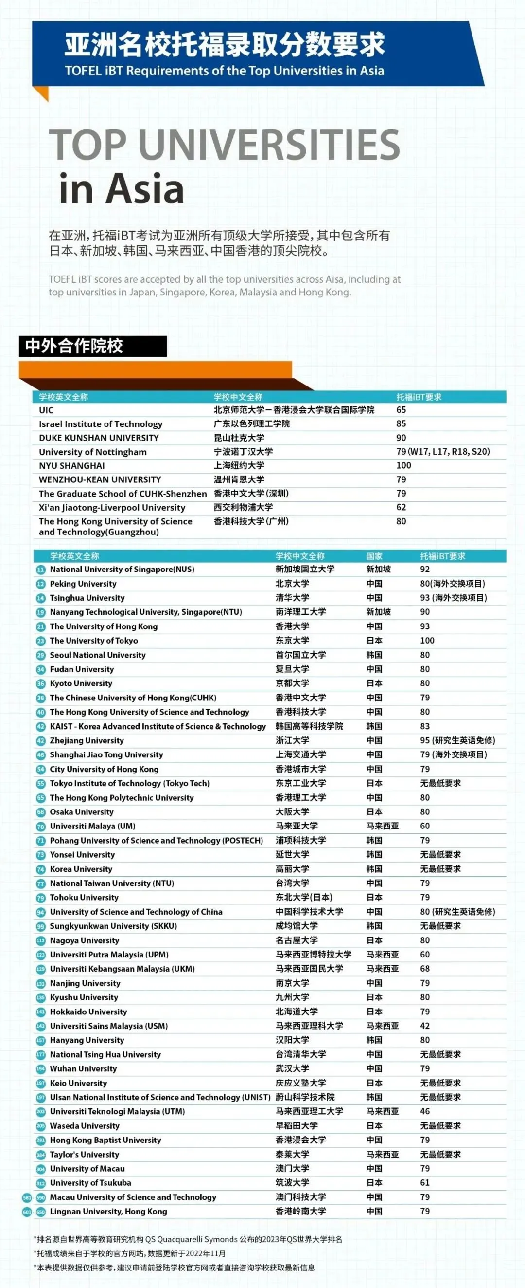 你是否好奇这些亚洲顶级学府对托福成绩有何具体要求?接下来,我们将为你揭晓答案: