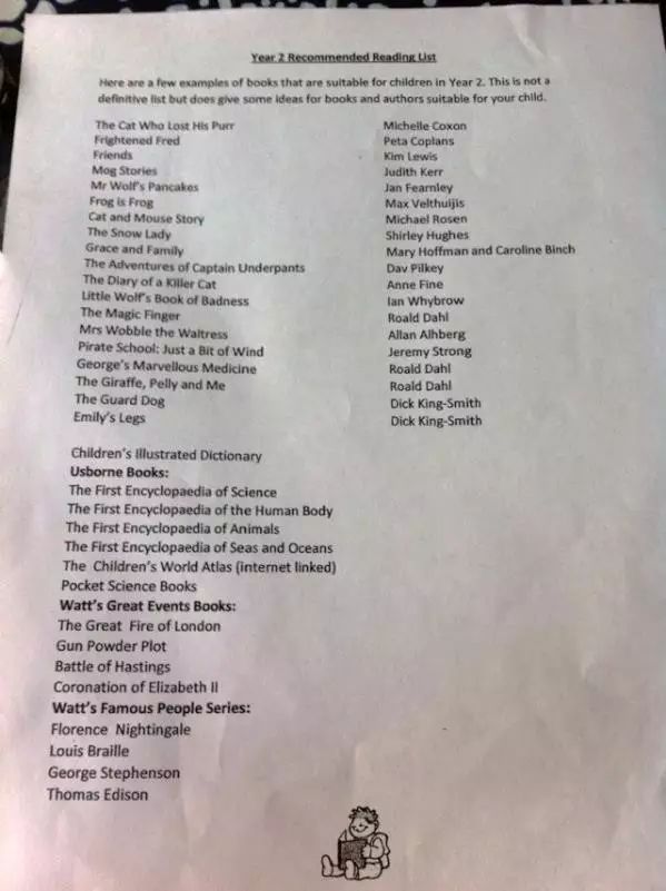 在家长陪读后,需要在阅读记录页上为每本书写下简短的阅读心得。通常,KS0年级的孩子每周至少需要阅读2本书,而KS1年级的孩子则每周需要阅读3-4本。到了KS2年级,老师会反复强调,每天的阅读时间应不少于20分钟。此外,每学年开始时,学校还会根据不同年级的特点,向家长发放一份推荐书单,以供参考。