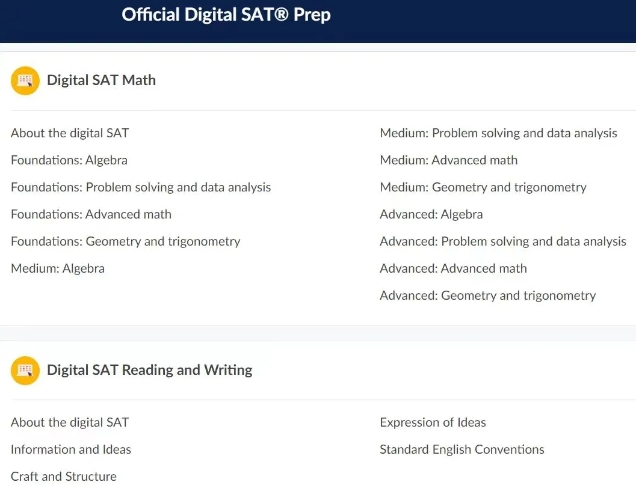 CB与可汗学院(Khan Academy)合作,创建了SAT官方练习(Official SAT Practice),为所有考生提供全球统一标准的、个性化的SAT免费线上模拟练习题,有成千上万的互动问题以及视频课程,你可以随时随地学习并获得即时反馈。
