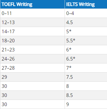 从分数对应的角度来看,雅思听说读写各项都达到7分,那么在托福中的对应分数大致为:阅读24-26分,听力24-26分,口语23分,写作27-28分。反过来,如果托福总分达到100,即平均每项25分,那么对应的雅思分数为:阅读7分,听力7分,口语7.5分,写作6.5分。