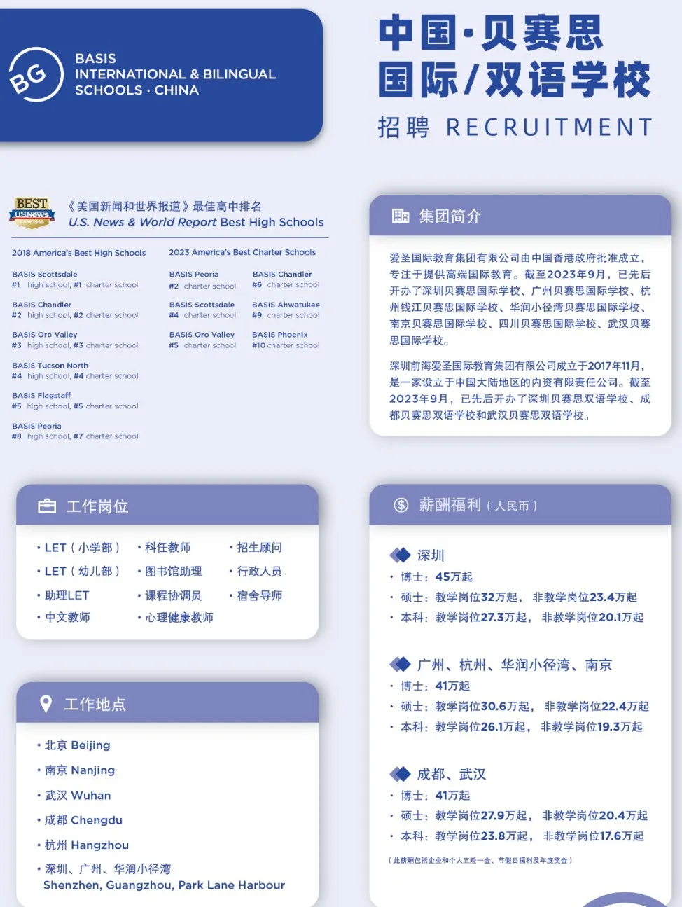 对于拥有博士学位的应聘者,深圳贝赛思福田双语学校直接提供45万以上的年薪。硕士学位的教学岗位年薪起步价为32万,非教学岗位为23.4万起。本科学历的教学岗位年薪则从27.3万起,非教学岗位为20.1万起。这样的薪资标准,无疑是对教师专业素养和能力的一种认可和尊重。