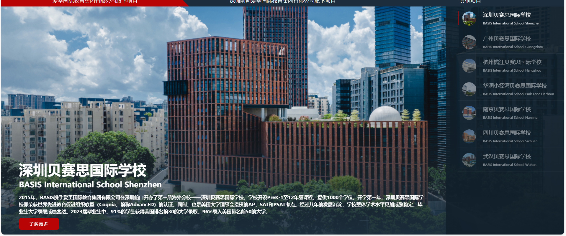 爱圣国际教育集团有限公司,经中国香港政府批准成立,一直致力于提供高端国际教育服务。自成立以来,集团迅速扩张,截至2023年9月,已在中国多个一线城市及新兴区域开办了七所贝赛思国际学校,包括深圳、广州、杭州(钱江)、华润小径湾、南京、四川和武汉。这些学校均秉承集团的高质量教育理念,为学生提供国际化的学习环境和资源。