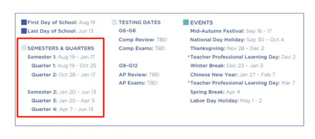 贝赛思国际学校的一学年分为两个学期(Semester),并且有四个学季(Quarter)。这种结构化的安排让学生的学习进程和成绩评估更加有条理和阶段性。