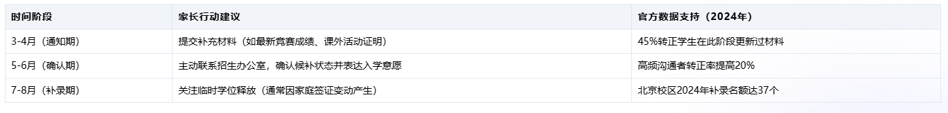 根据贝赛思官方发布的《2024-2025学年招生时间表》,候补转正的关键窗口期如下: