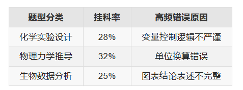 科学模块因学科交叉性强、实验分析题占比高(40%),成为第二大挂科科目。2024年考纲调整后,新增“碳中和背景下的能源转化”案例分析题(占分15%)。