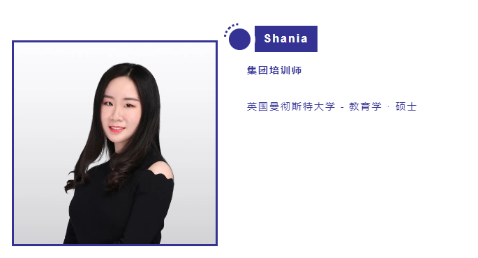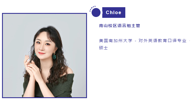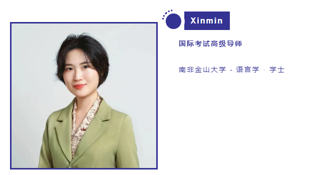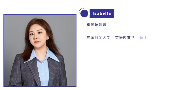 深耕语言培训行业七年,五年师资培训经验,行业口碑极佳。标化类考试教学经验丰富,曾培养出多位听力 &阅读高分及满分学员。擅长国际学校入学备考教学,成功帮助大量学员高效备考,顺利通过国际学校入学考试。擅长因材施教,注重能力技巧双重提升。善于启发学生思维,培养学生批判性思维。课堂氛围严谨而不失轻松活泼,深受学生喜爱。