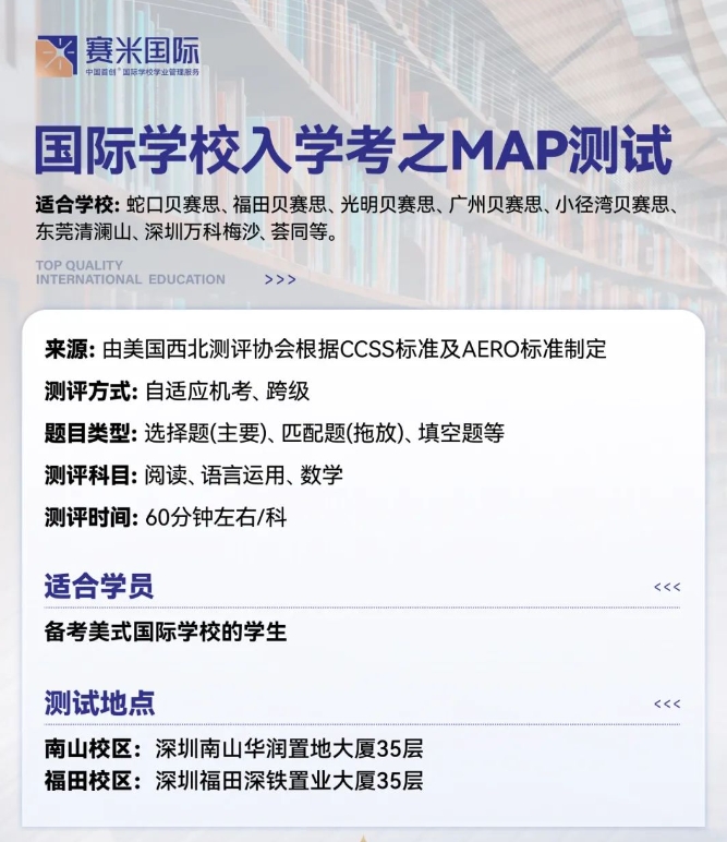 MAP机考是入学考试的重要环节,考试时长为1.5小时,共60道题,题型包括选择题和拖放匹配题,全英文作答。考试内容涵盖英语语言运用、英语阅读和数学三个领域。