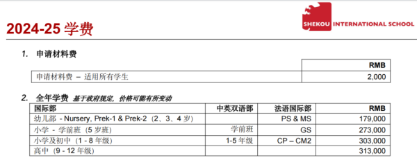 - 蛇口国际学校:2024年学费涨至313,000元/年,与哈罗、贝赛思、曼彻斯通并列深圳最贵国际学校;