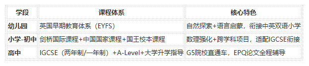 - IGCSE/A-Level双轨:覆盖20+科目,匹配藤校/G5申请要求,提供灵活学制选择。