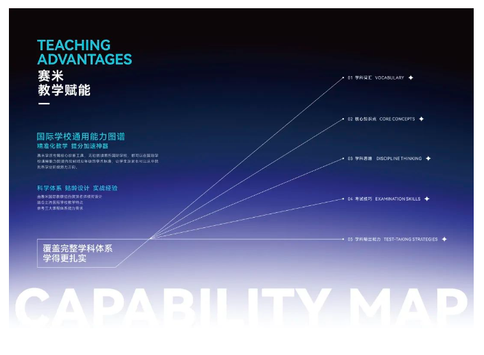 针对AP/IB/A-Level三大主流国际课程,我们独创了全体系的国际学校通用能力图谱,从"学科词汇、核心知识点、学科思维、考试技巧、学科输出能力"五个维度赋能学生成长。