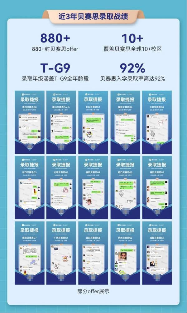 在教育的征程中,赛米学子们一路高歌猛进,硕果累累。横扫2500+全国TOP50国际学校offer,涵盖幼儿园-高中全年龄段,实现了美系/英系/IB/DSE多元化录取!其中贝赛思全国10+校区880+封,入学录取率高达92%!