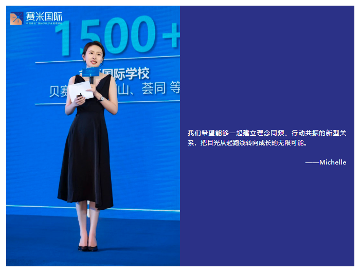 博明程集团合伙人&数字化总监Michelle首先回顾了赛米国际五年来的成就,已助力超过2500名孩子进入全国顶尖国际学校,美系/英系/IB系全面开花,并为超过3000个孩子提供了学业管理支持服务。