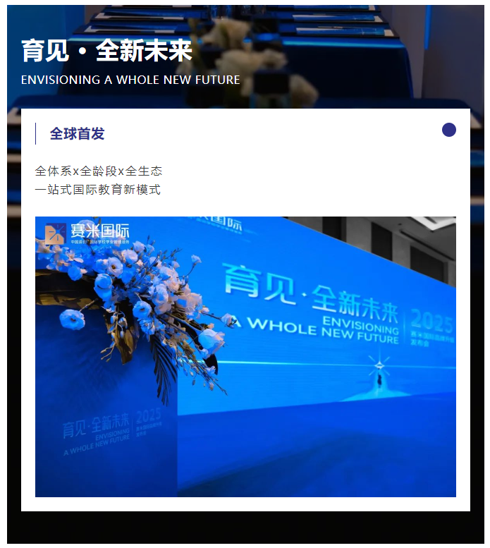 2025向新求变,在机遇与挑战面前,赛米国际秉持“全新未来”教育理念,以前瞻性视角探索教育变革新路径,以创新思维开启未来育人新维度,与您一同育见一个充满无限可能的未来。