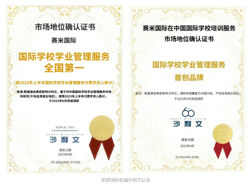 比如沙利文授予的“国际学校学业管理服务首创品牌”以及“国际学校学业管理服务全国第一”市场地位确认证书、 "2024年度影响力教育品牌"、“2024-2025年度留学教育行业地区优秀品牌”等等,这些都是对我们团队服务能力的最佳见证。