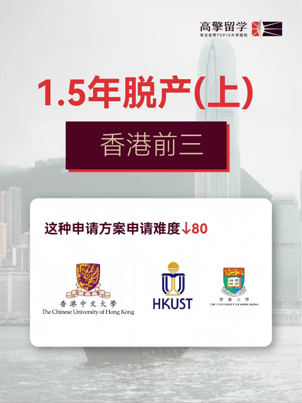 - 路径:先入读香港理工大学/香港城市大学(超一本线30-50分),后通过“2+2”项目转入港前三;