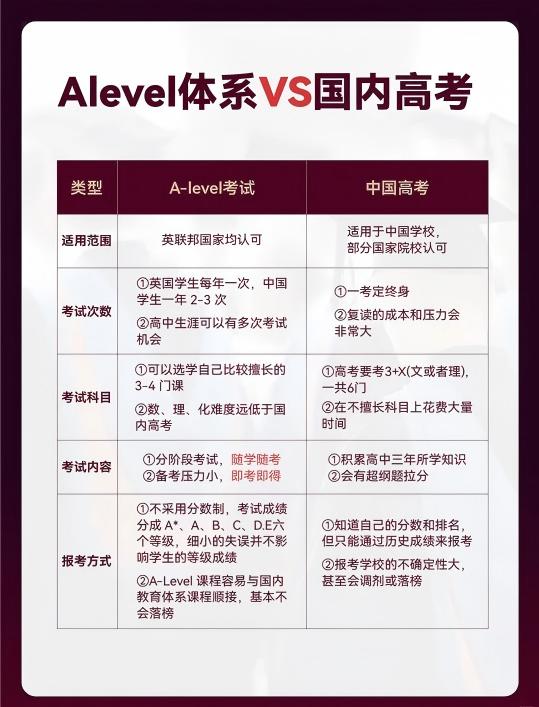 - 课程对比:国内高中3年→A-Level仅需1年,教学内容一致但节奏紧凑;