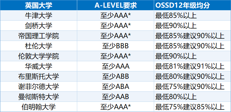 - 英国TOP20大学:AAA-A*AA(视专业而定)