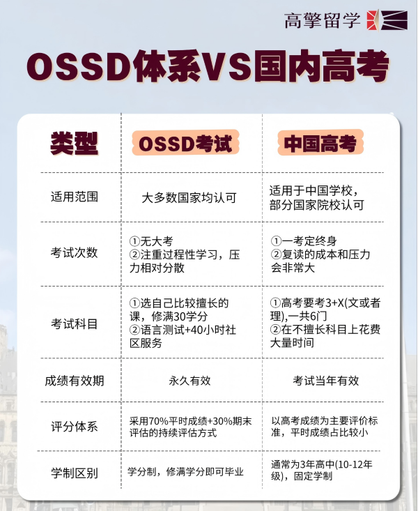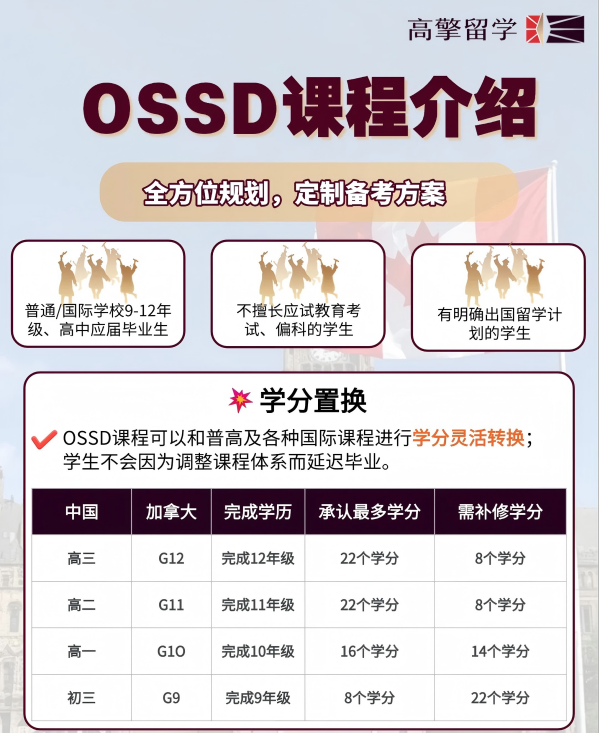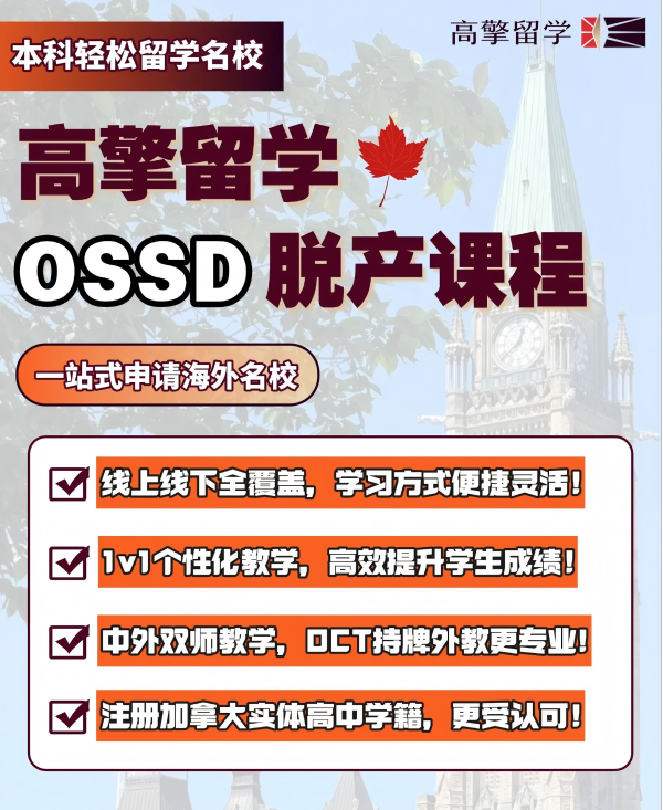 高考成绩不理想?国内院校选择有限?OSSD脱产课程正成为越来越多普高生冲刺海外名校的“黄金跳板”!作为全球TOP4国际课程体系,OSSD以非应试、学分灵活、全球认可三大核心优势,助力学生逆袭英美加澳顶尖大学。