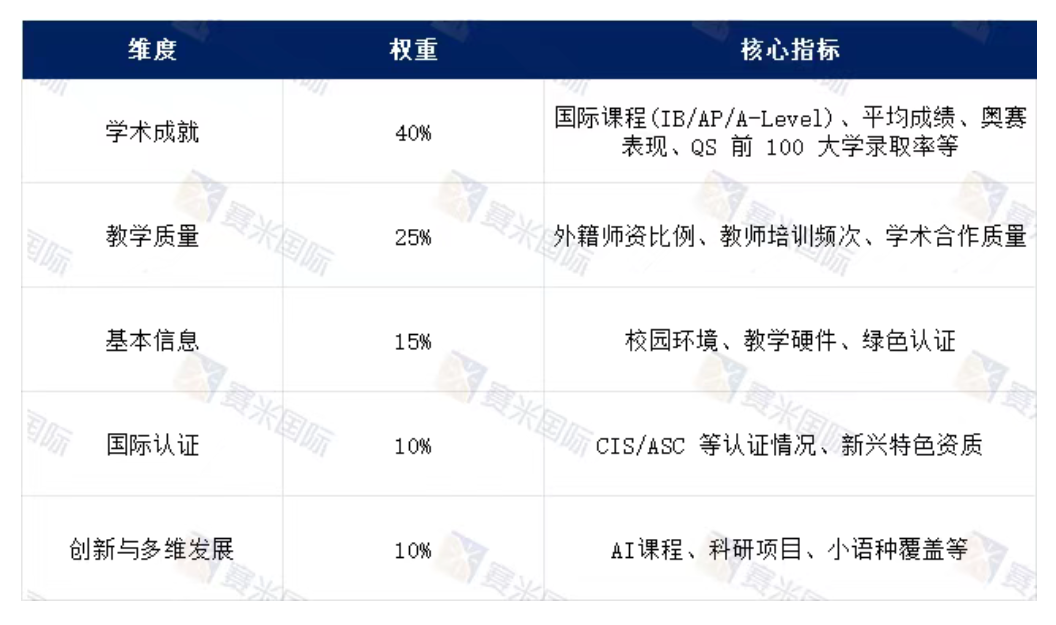 这次评估以全面、科学的评价体系为核心,对全国范围内众多国际化学校进行了深入分析。评估体系涵盖五大关键领域,通过40项精细化量化指标,对3000余所学校的学部展开综合测评,旨在为家长提供权威、实用的择校参考。