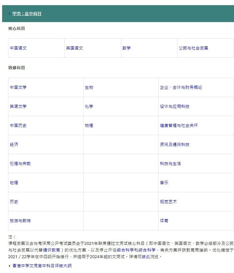 - 核心科目(必考4科):中文、英文、数学、公民与社会发展;