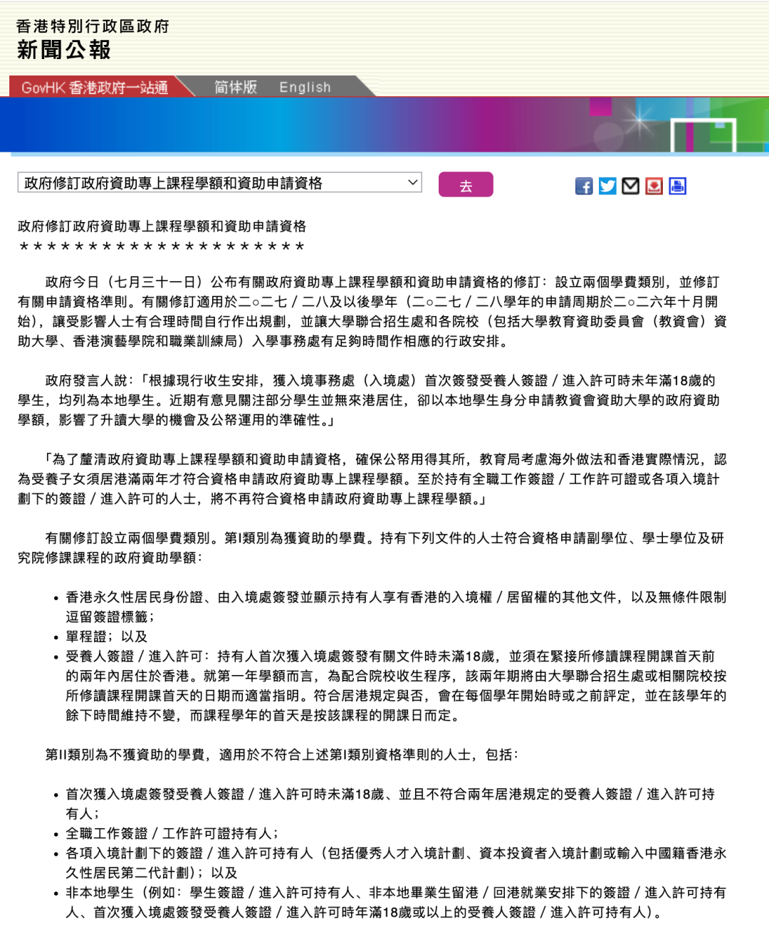 香港政府最新公告,发布于2025年7月31日13时30分