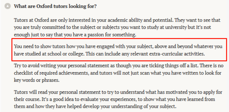 以牛津大学为例,根据官网公开显示,学校不仅仅评估学术成绩,更重视学生在学业之外的自主探索,这些深度实践需真正促进学科理解,并能转化为面试中的批判性思考与洞见输出,以此证明学术热情与思维潜力。