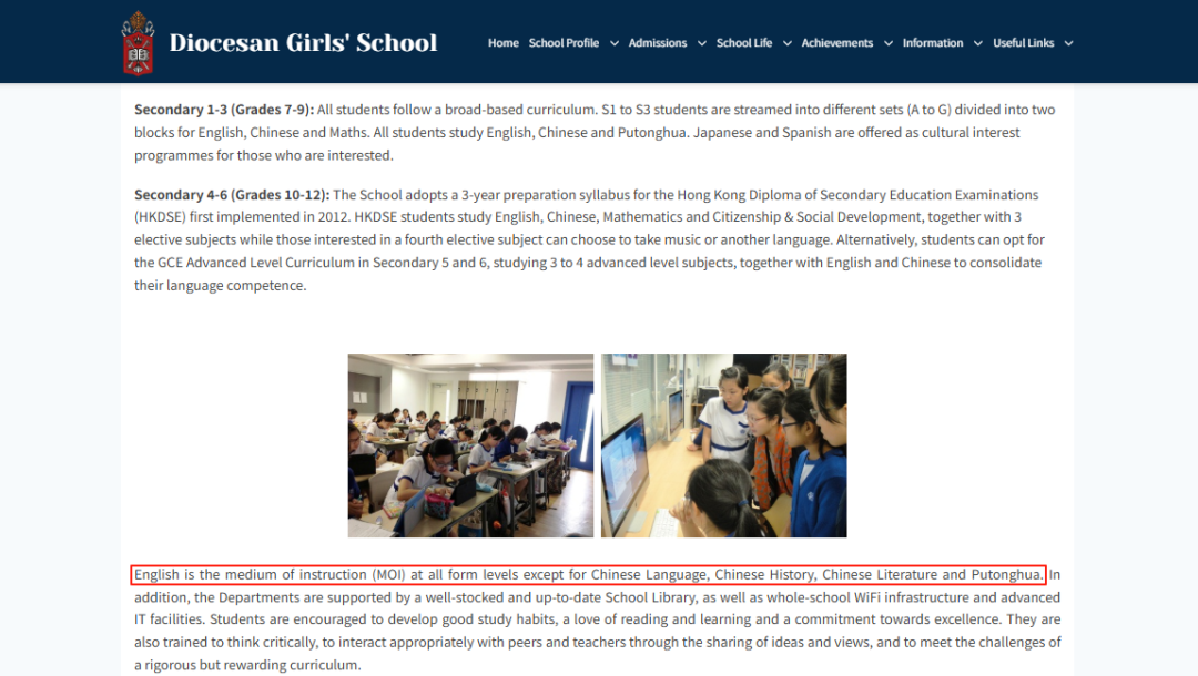 以拔萃女书院为代表,除特定中文相关科目外,英语教学贯穿主导地位,普通话更多作为独立课程存在,日常交流与学科授课中占比极低。部分传统中文学校甚至将粤语作为主要教学与沟通语言,形成鲜明的本土语言生态。