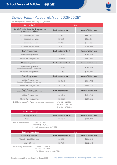 而耀中国际学校的IB课程学费更高,中学阶段最高可达27.2万港币/年。