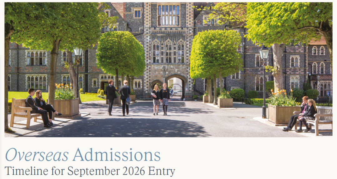 海外国际学生2026年9月入学,可以接受11+(只有走读),13+/14+和16+所有申请都是2025年9月5日截止。