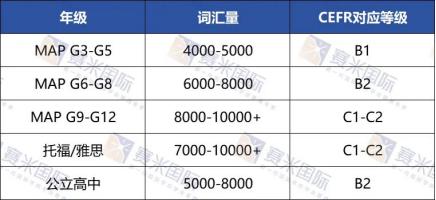 词汇是 MAP 的 “地基”,不同年级的要求有所不同。根据普遍的教学经验总结,各年级需重点掌握的词汇量参考范围如下:G3-G5需4000-5000词;G6-G8接近公立高中的水平;到了G9-G12基本对标托福、雅思水平。