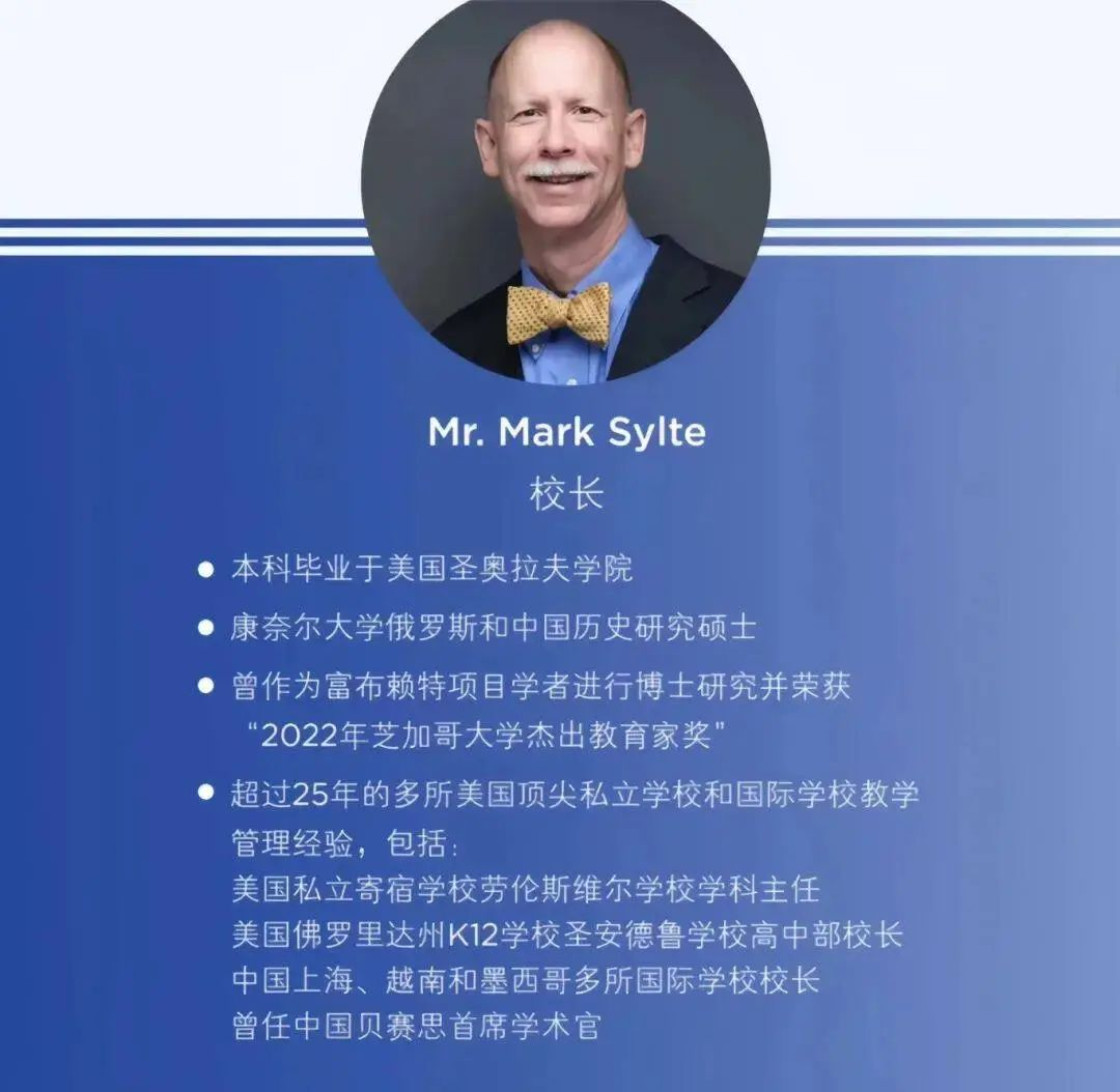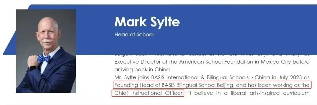 贝校管理层倾向于 “本土化 + 国际化” 的复合型人选。原成都贝赛思校长Mr. Mark Sylte将转战北京贝赛思,担任创校校长一职。