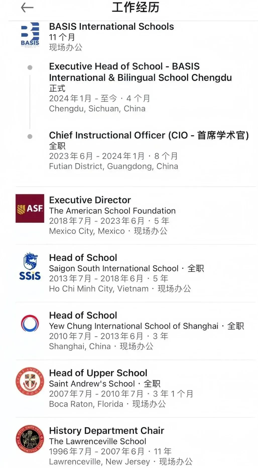 管理经验:拥有超25年私立学校和国际学校教学管理经验,足迹遍布美国、东亚、墨西哥等多个国家和地区。