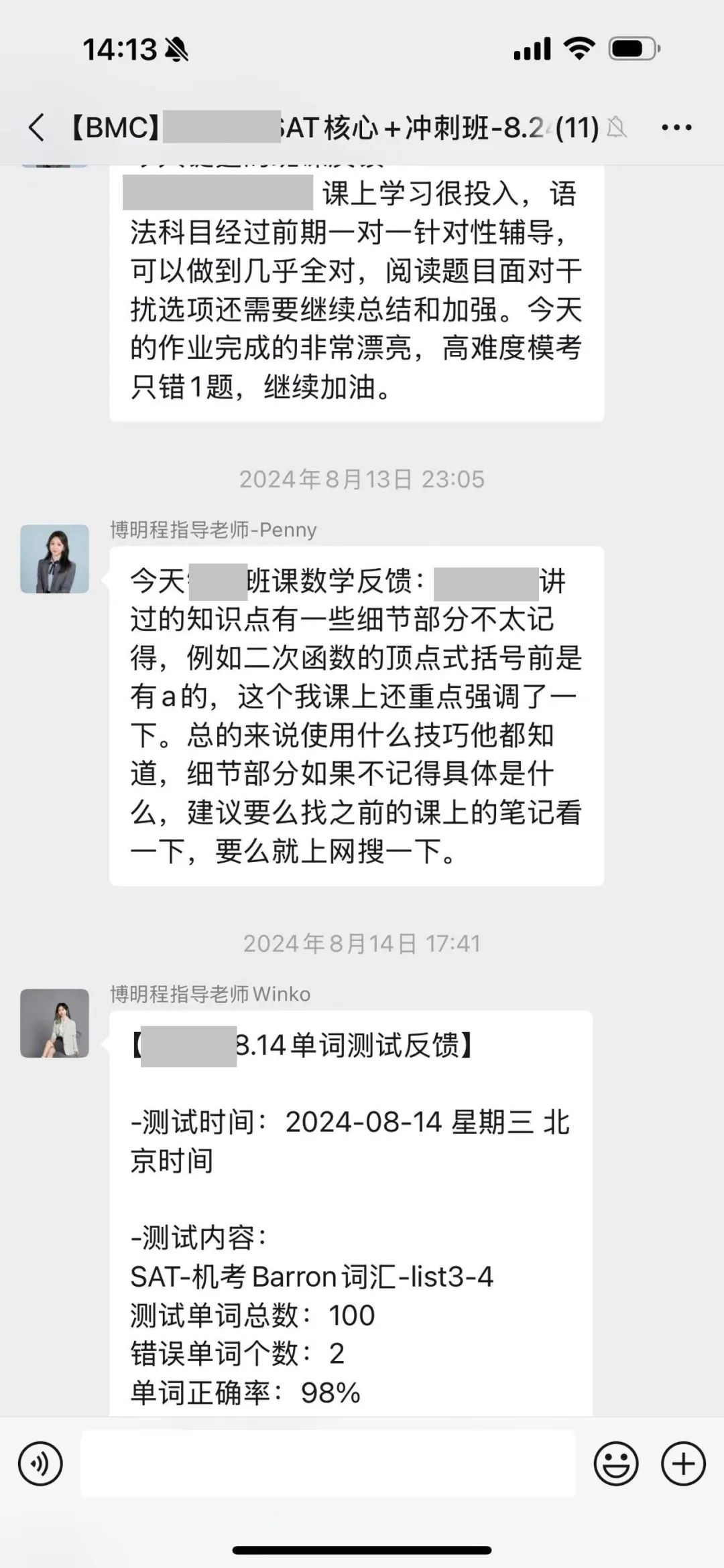 所有老师在我SAT突破的期间都给予了我很大的帮助。他们对我的关注我是看在眼里的,能够针对我作业中出现的问题,第一时间了解我需要在那些方面花更多的精力去突破。