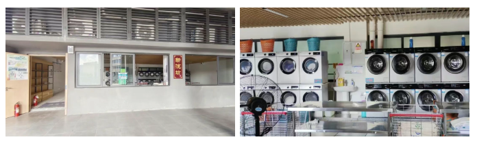 此外,校区还设有洗衣房——新浣坊,高中部洗衣房位于B4栋一楼。学生们只需将换洗衣物装入洗衣袋并打包好,放入指定的收衣柜中,衣物在经过专业清洗和烘干后,学生可直接前往取衣柜领取干净衣物。