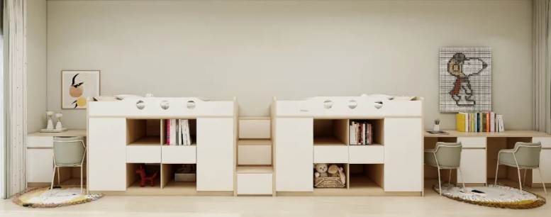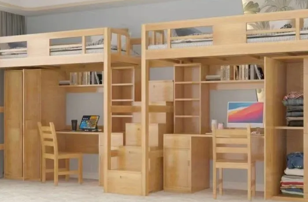 除了每个床位都配有衣柜外,宿舍还额外设置了大立柜,以满足学生们多样化的储物需求。