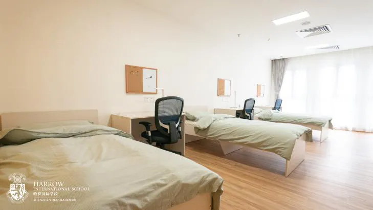 在哈罗,Y6及以上年级的学生可申请住宿,宿舍提供三人间、双人间及单人间等多种选择。每间宿舍均配备独立床铺、独立衣橱,每位学生还拥有专属的写字桌椅,空间十分宽敞。单人间与双人间为两个宿舍共用一处卫生间,而三人间则采用公共卫浴设计。