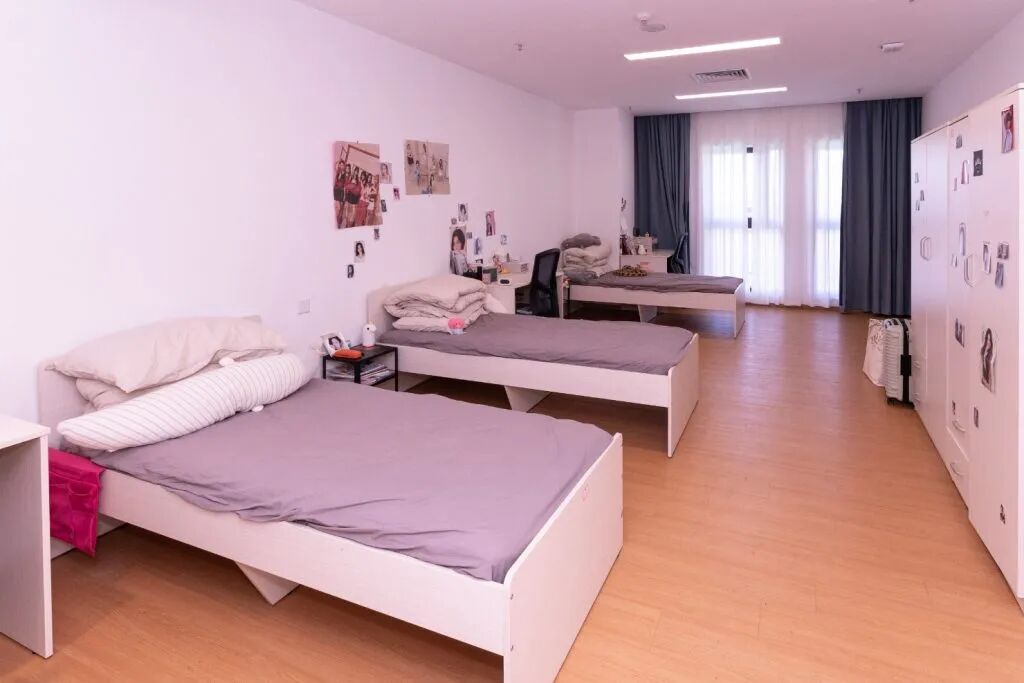 国王中小学的宿舍楼巍峨耸立,共14层之高,低年级学子安居于较低楼层,高年级学生则栖身于较高楼层,每间宿舍均精心规划了学习区域。男生女生分楼层居住,并乘坐专属电梯直达各自楼层,确保私密与便利。宿舍分为四人间与两人间两种规格。