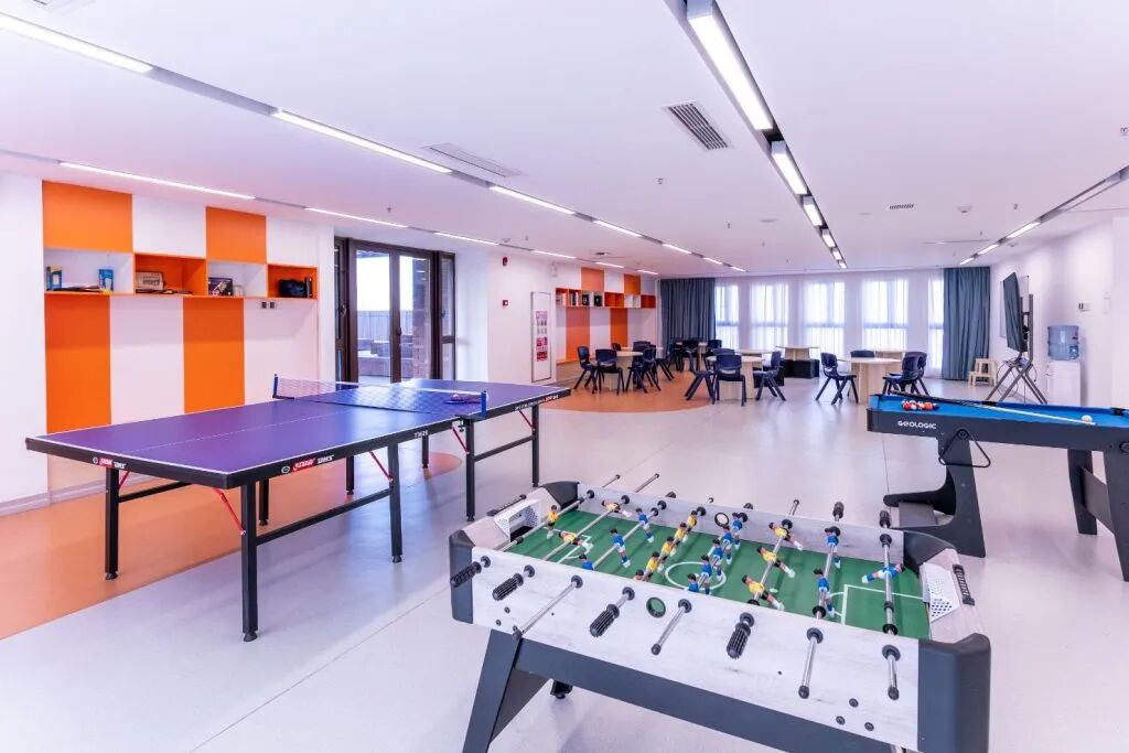除了宿舍区域外,住宿生还享有一个宽敞的公共活动空间,可用于学习和娱乐,住宿环境堪称奢华至极!