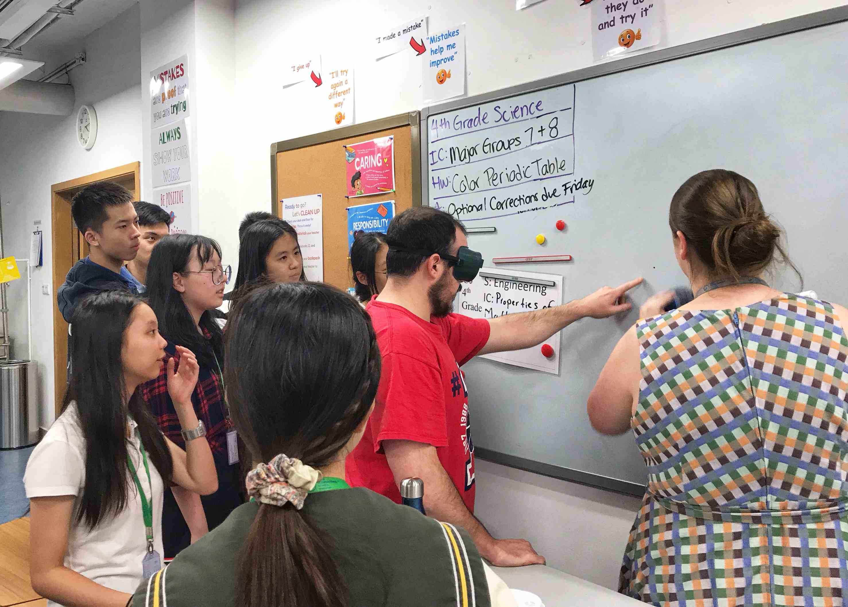 我校学生在AP心理学课堂上进行了一系列的互动实验,在每个实验区域内使用某一种感觉和知觉来进行体验,以此应用感知理论来探索真实世界。