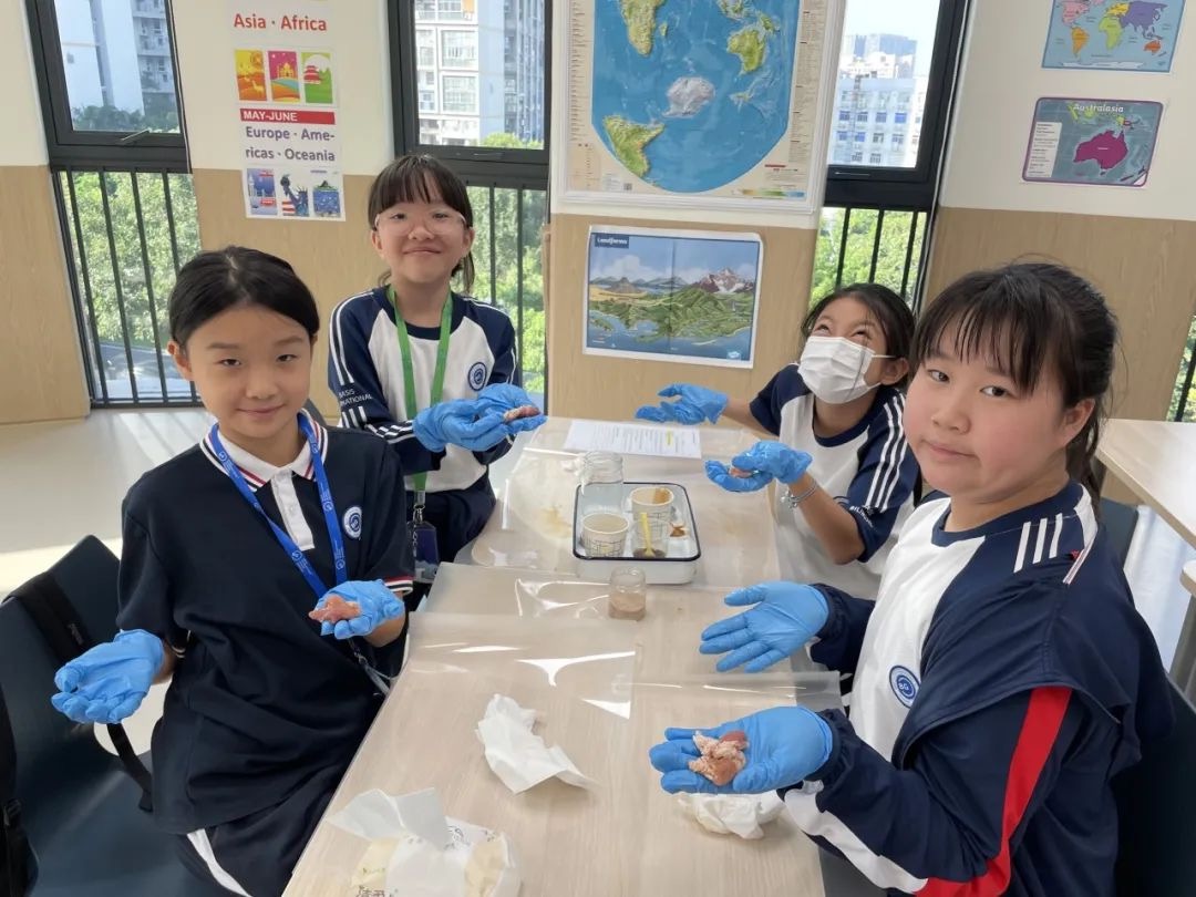 五年级古典学课学生在初中科学老师Dr. Karen和Mr. Ryan的指导下,通过一个有趣的“木乃伊制作”实验,学习这一古埃及仪式背后的科学原理,深入了解古典学和生物学之间的奇妙联系。大家在实验中勇于探索,尝试使用不同的材料保存肉类,了解各种材料的功效,这次独特的体验在古典学和生物知识间架起了一座桥梁,也让同学们有机会沉浸式地学习和探索神秘的埃及文化。特别感谢Mr. Cockyut和我校行政后勤团队为这次难忘的学习机会提供了大力支持。